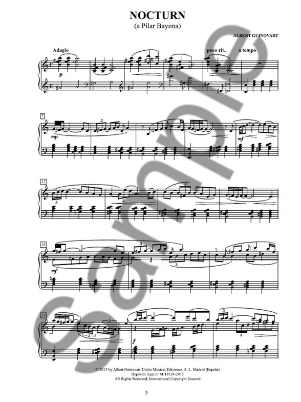 Albert Guinovarts three Nocturns - Nocturn (A Pilar Bayona), Nocturn A Chloé and Nocturn Al Clar De lluna, for solo Piano.