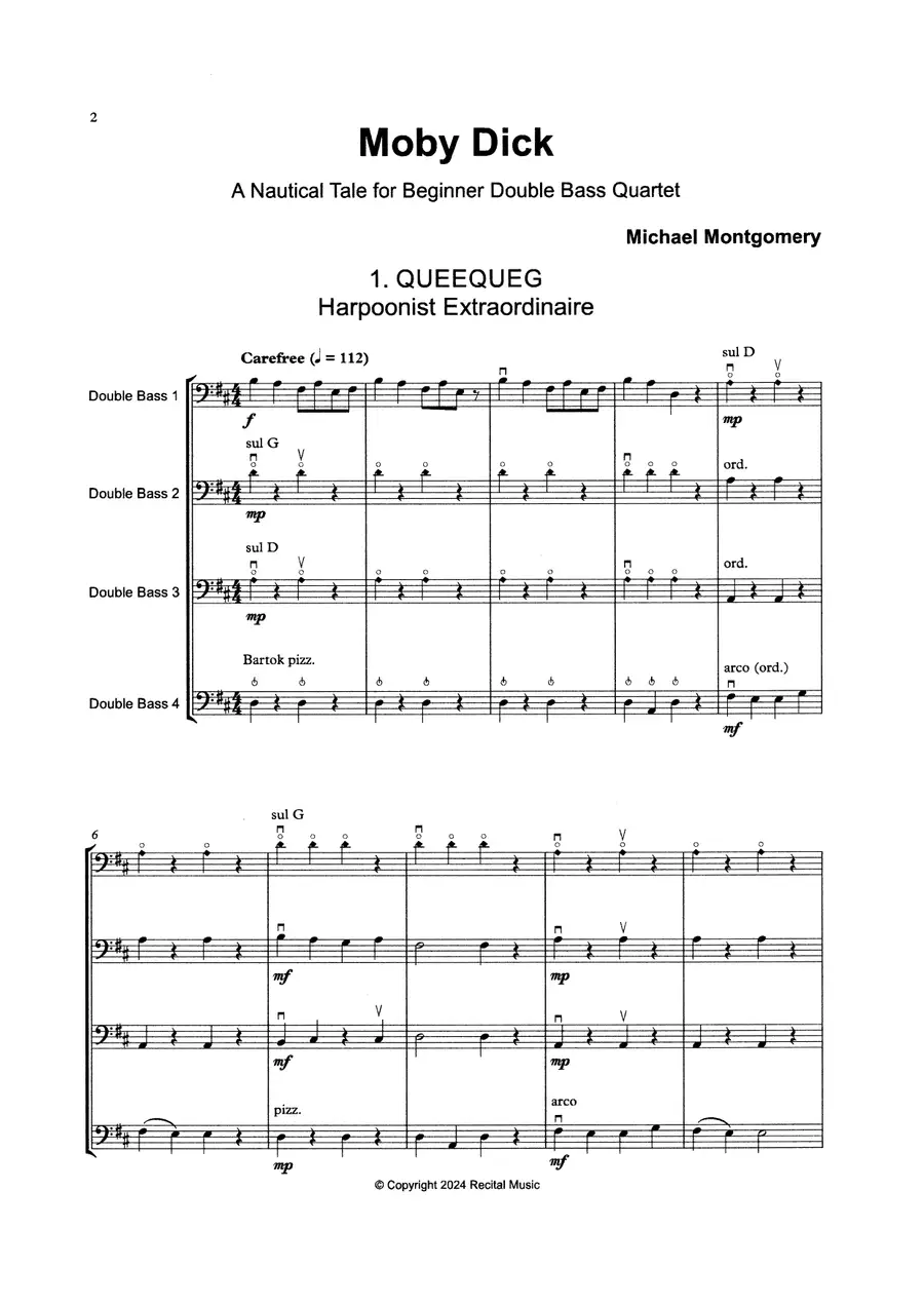 - Michael Montgomery: Moby Dick - A Nautical Tale for Beginner Double Bass Quartet